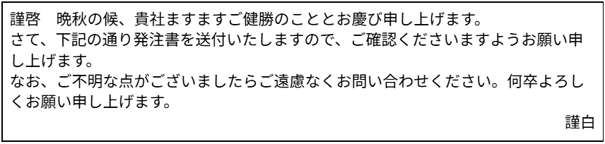 ビジネス文書の1つである送付状には、冒頭に挨拶文を記載します。挨拶文は次の構成にすることが一般的です。
