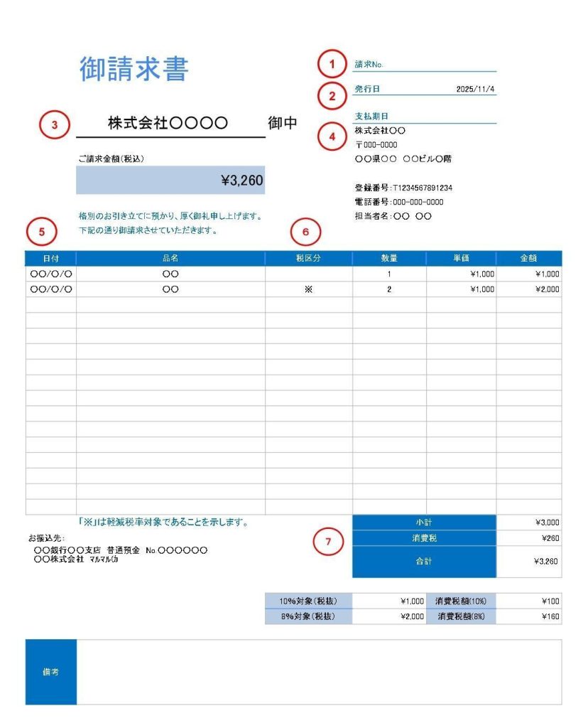 また、振込先口座や支払期限を記載する場合、正確に記入して、受け取る側がスムーズに支払えるように配慮しましょう。必要な項目を漏れなく入力することで、トラブルを防ぐことができます。